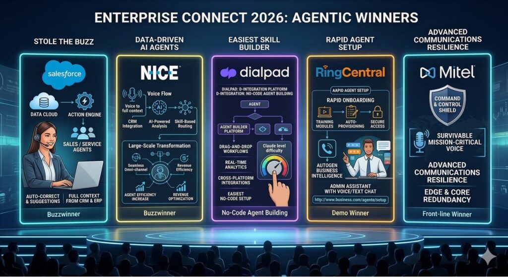 Enterprise Connect 2026 marked a definitive shift from theoretical artificial intelligence to practical agentic deployment. The annual gathering showcased a market moving beyond simple chatbots toward autonomous systems capable of complex reasoning and execution. This blog overviews our analysis of some of the winners at Enterprise Connect and offers our rationale.
